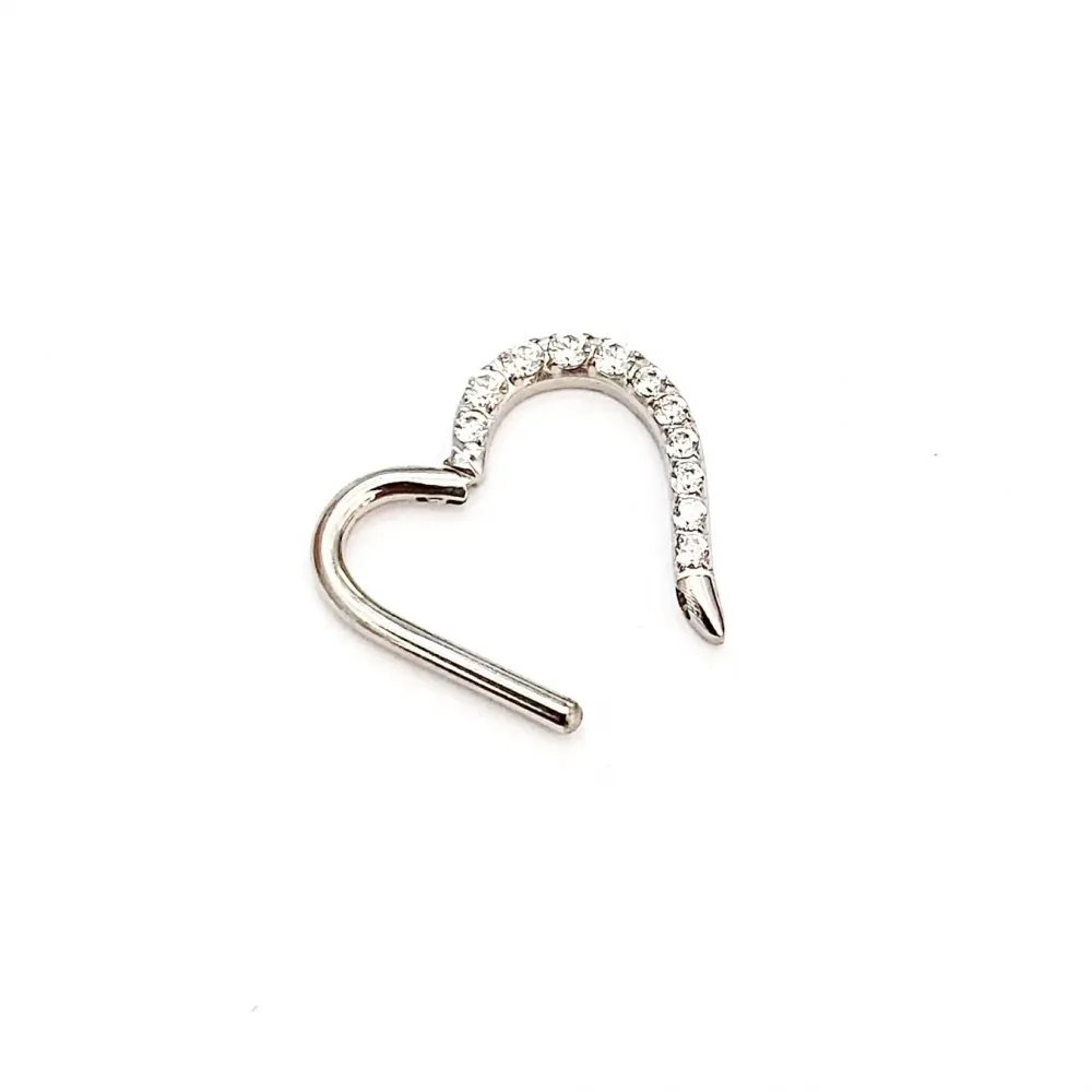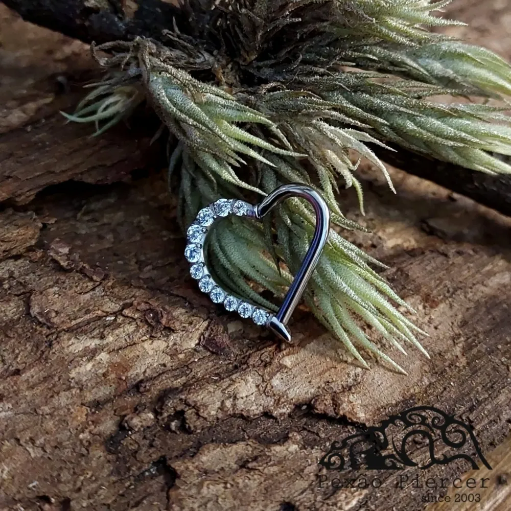 Argola em TITÂNIO CORAÇÃO PONTINHA Clicker com Pedras Cravejadas 549