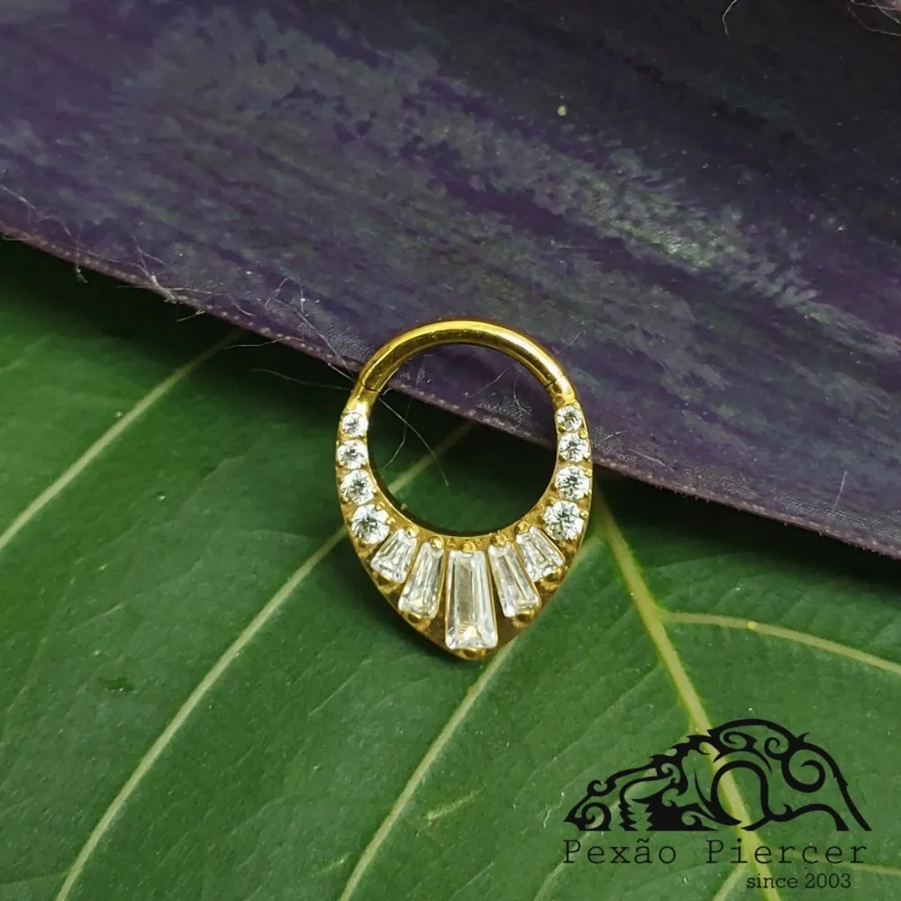 Argola em TITÂNIO PVD GOLD Estilo GOTA com Pedras 1091