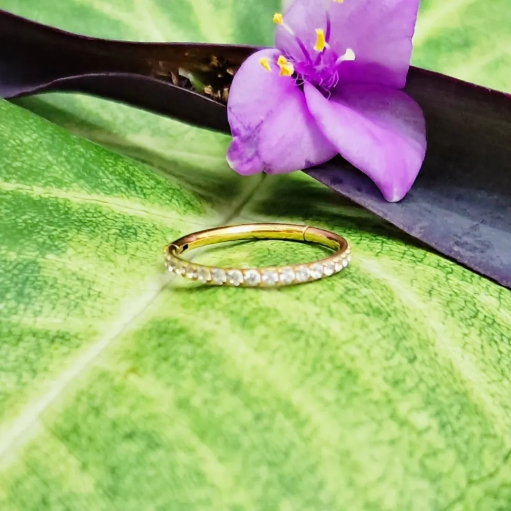 Argola Slim CONCH Clicker em  TITÂNIO PVD GOLD 12mm com Pedras CRAVEJADAS  Imagem